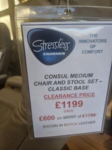 Stressless Consul Chair and Stool Set (Medium), Classic Base in Mole Batick Leather with Walnut  wood. Stunning Chair at an unbeatable price!