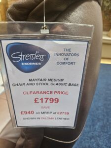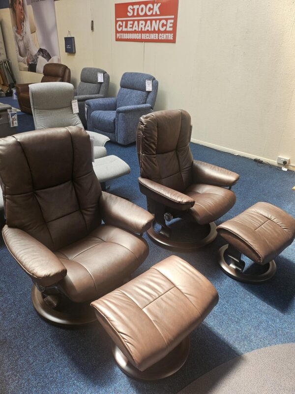 The Recliner Centre has many Stressless Mayfair chair and stool sets in-store for you to try. All sizes, designs and colour combinations can be ordered, with many available for immediate delivery.