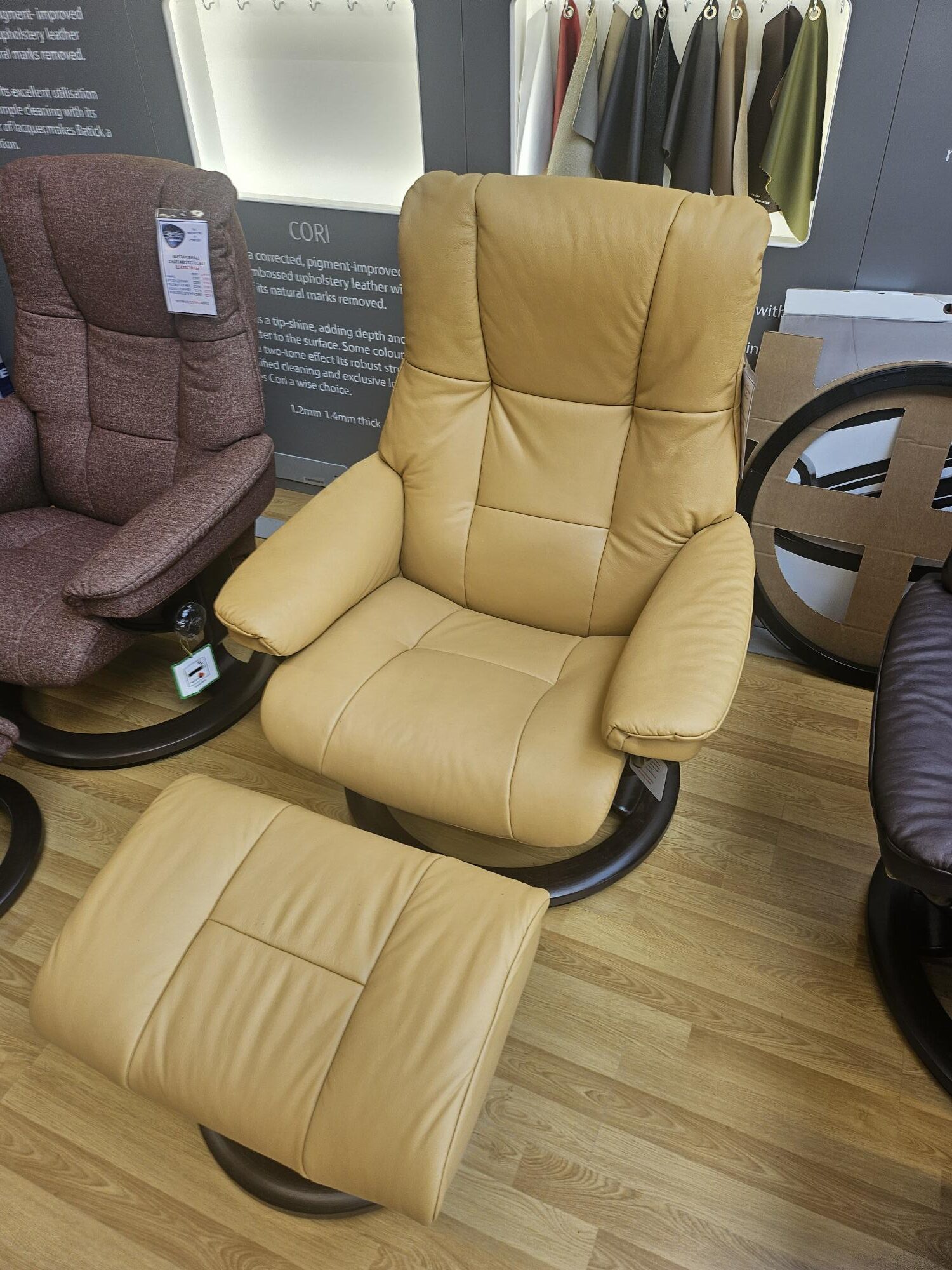 The Recliner Centre has many Stressless Mayfair chair and stool sets in-store for you to try. All sizes, designs and colour combinations can be ordered, with many available for immediate delivery.