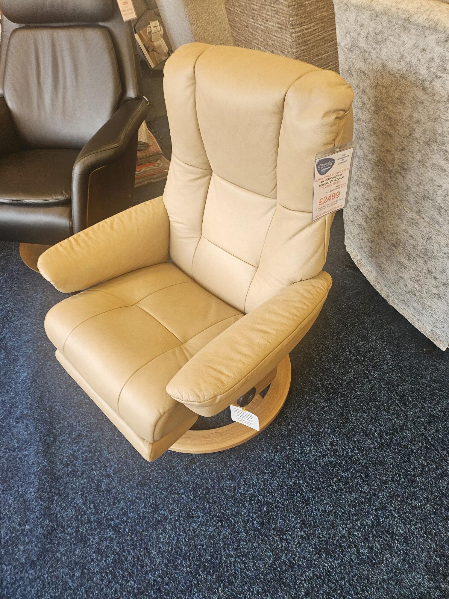 Stressless Mayfair Medium Power Recliner Chair in Paloma Sand leather. Last one left to buy at a massive discount of £1115 !
